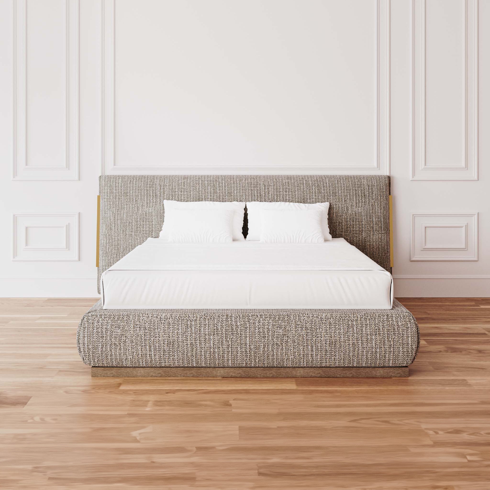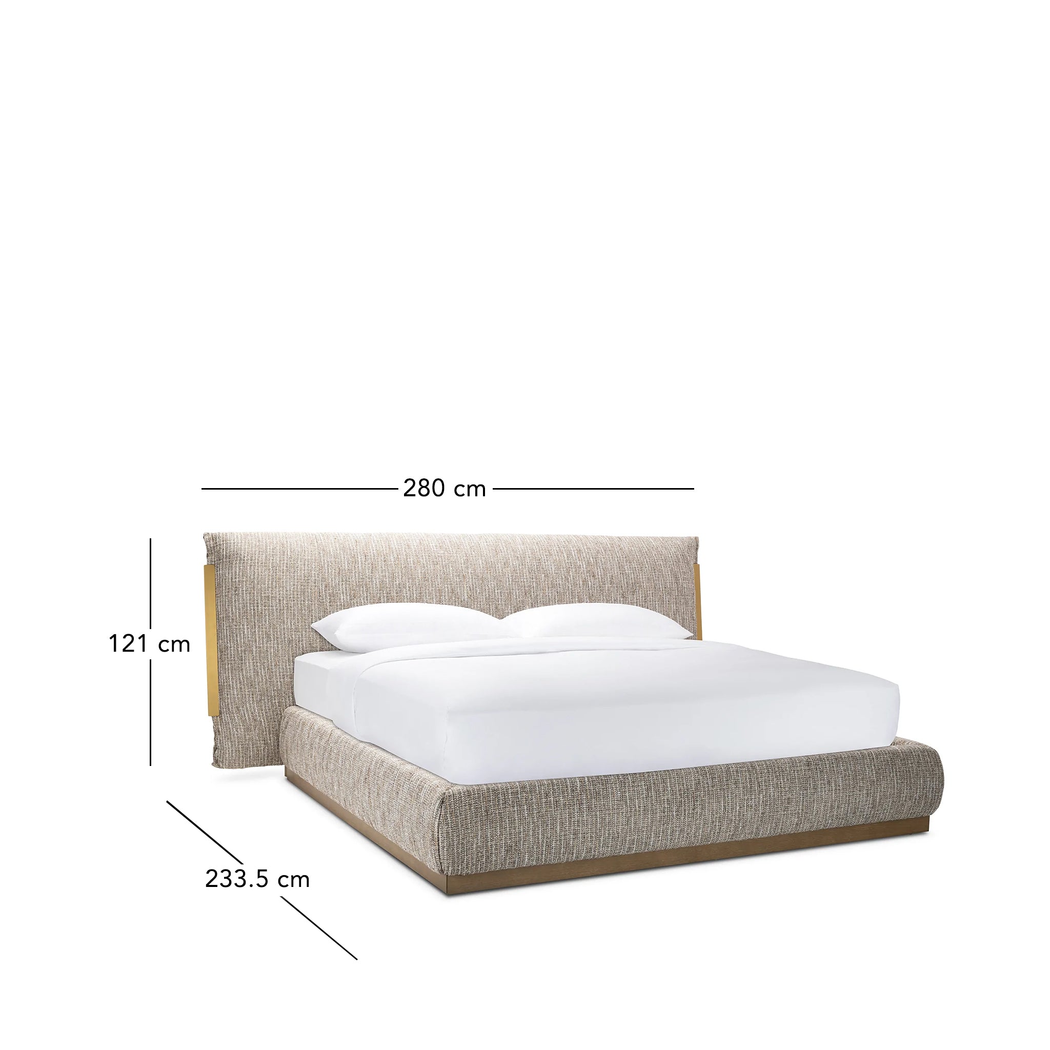 The Adonis US King Bed II adds a luxurious hotel feel to your bedroom. Its headboard sides accentuated with Stainless Steel electroplated in Brushed Copper finish create a simple yet elegant representation. Chenille fabric upholstery with Beige and Black shades lends an overall relaxing and comfortable vibe. Complementing the totality is a plinth in Bleached Greige Oak Wood Veneer finish.