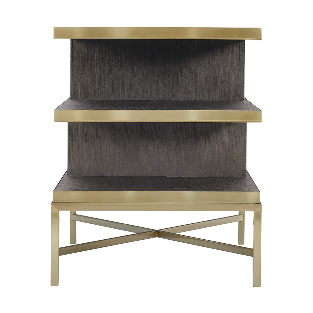 Boasting a petite hexagon-shaped top styled by a delicately carved apron, this accent table brings contemporary flair to your home furnishings. It is supported by long and slim six tapered legs that allow it to fit into any corner. Pewter finish throughout its body gives it a vintage feel. Collect the Albion Accent Tables range for a harmonious contemporary look.