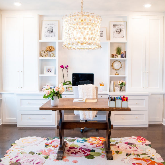 Stunning and elegant, this chandelier parades interconnecting lines with a Gold Leaf finish for a dazzling look. The arrangement of Matte-White Porcelain flowers balances yin with yang, providing a striking look. When switched on, this piece emits a refreshing and inviting glamour.