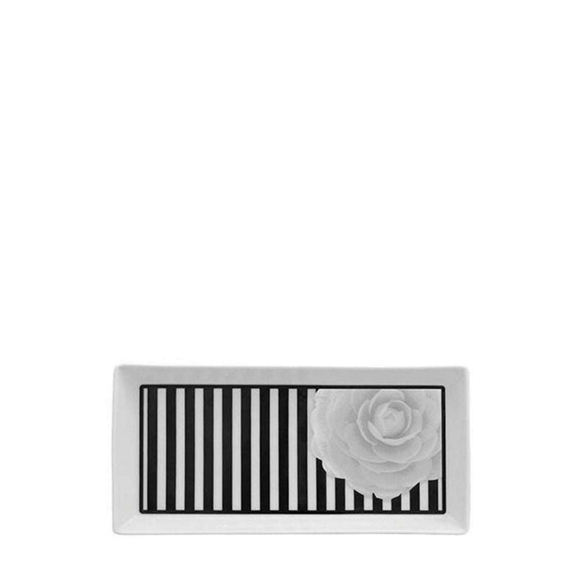 Featuring the Luciano Fidalgo exclusive, the Rectangular Tray Camellia is compelling in its looks. Portraying a linear narrative, it showcases a modern vibe that is apt for an exquisite tablescape. The prominent white rose glaze steals the show.