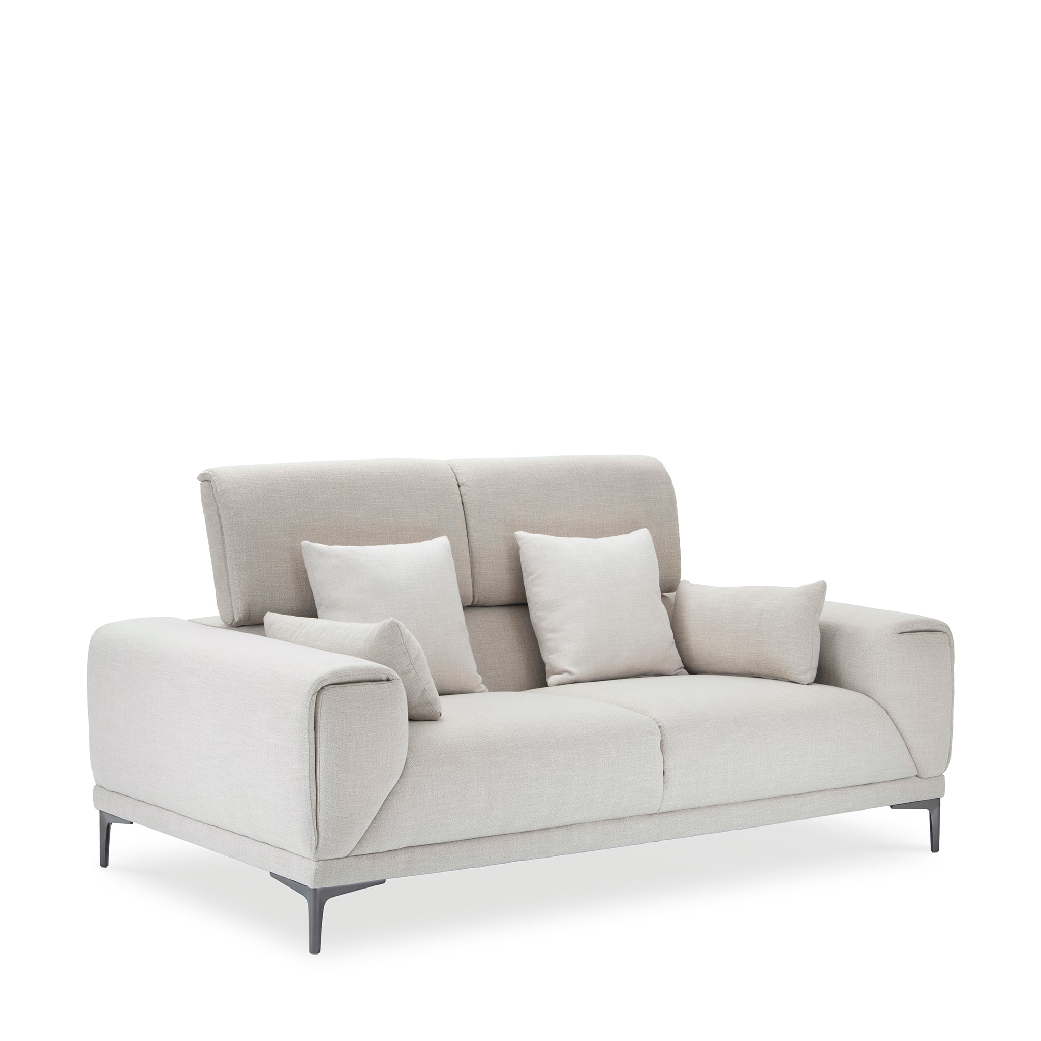 The flexible and innovative Devanna Loveseat will transform your home's interior in a snap. The two-seater Sofa dolled up in Beige Chenille fabric offers a neat and welcoming image. Be enthralled by its adjustable backrest made of Stainless Steel with a Black finish, which allows you to style it to your liking. Accompanied by two lumbar cushions in the same fabric for extra comfort, the Stainless-Steel legs in an Electroplated Dark Chrome finish complete this safe and stable piece.
