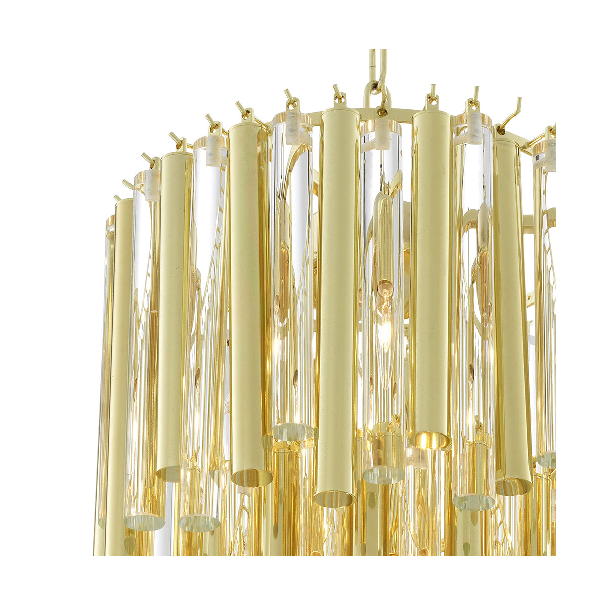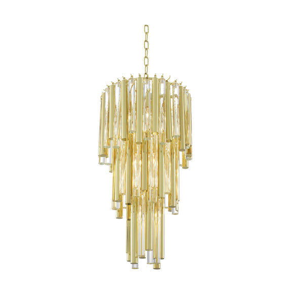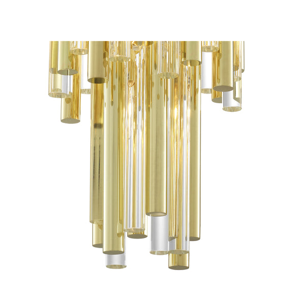 Capture the look of pure luxury with the Gigi S Chandelier. Like a glamorous piece of jewellery, this lustrous luminary provides optimum radiance in your décor. This Art Deco style chandelier features a tapered body with 3 hoops. Rods of clear glass and gold coloured metal are draped around the hoops.