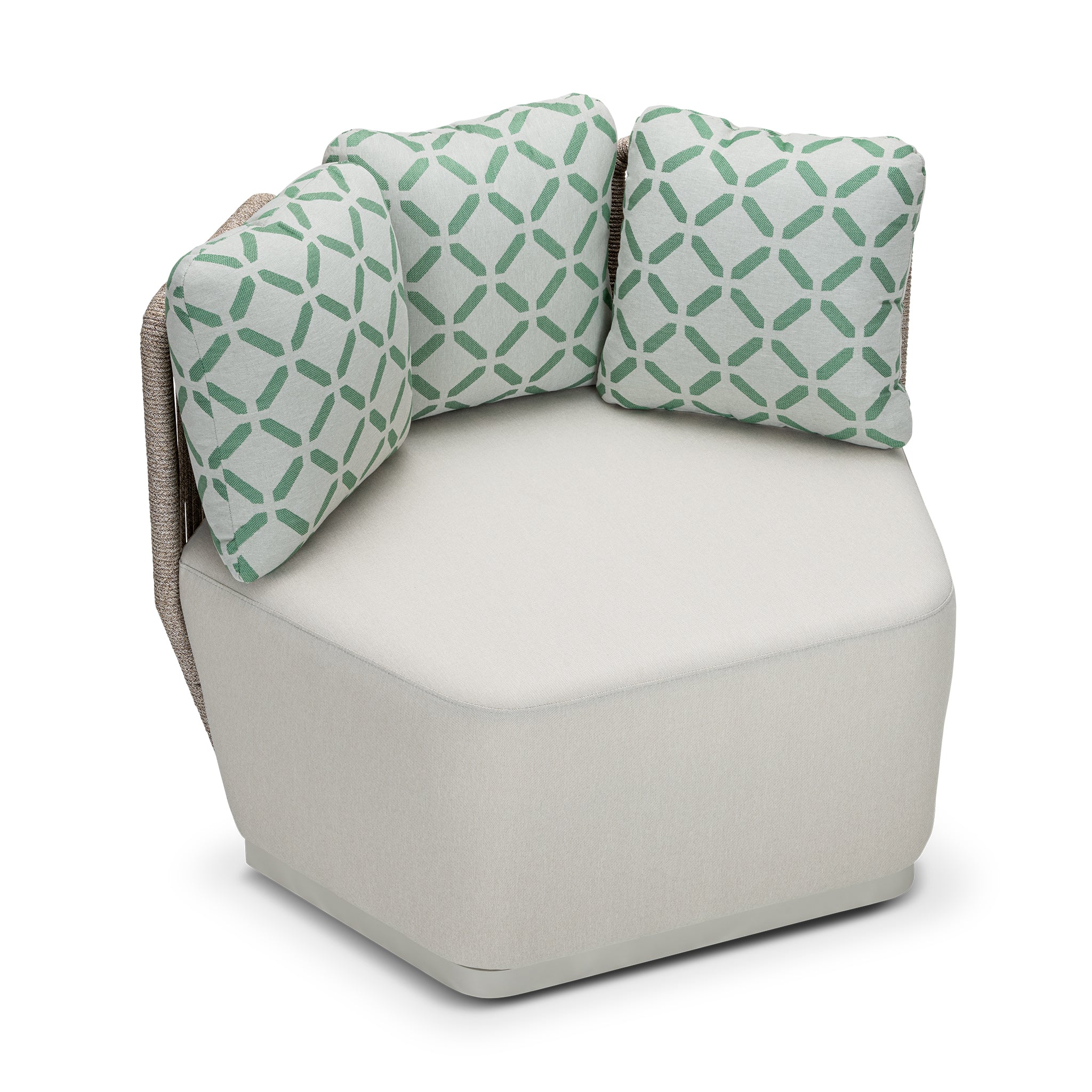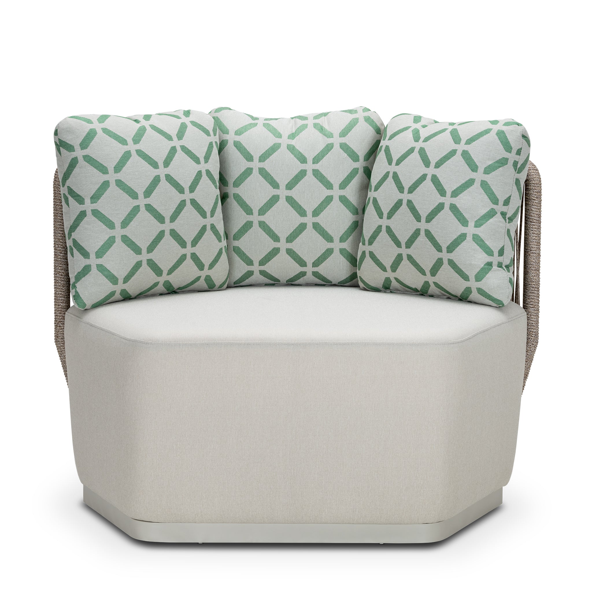Comfort and style with the exclusive Iris Single Chair are offered with high-quality outdoor fabric in Geometric Verde and Beige Pecan designs. Complete your full outdoor sitting setup with the Iris three-seater sofa.