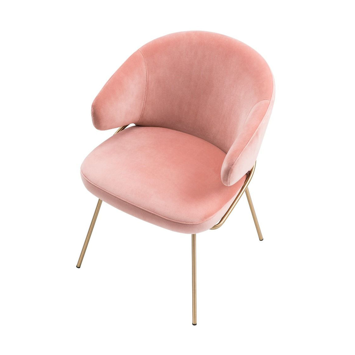 This Art-Deco dining chair will bring a modern and elegant touch to your kitchen area. It has a unique wood silhouette that makes it an ideal place to unwind in style. Savona nude velvet upholstery with decorative stitching enhances its appealing and chic appearance. The brass metal frame that connects to the conical legs adds a hint of glitz.