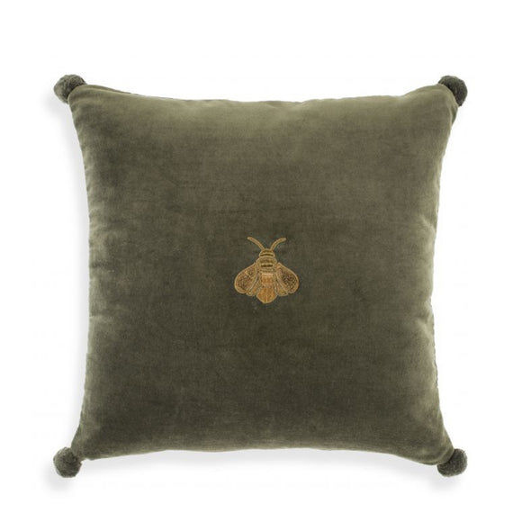 Style your sofa effortlessly with this fashionable pillow. It features a square-shaped form covered in Green Velvet fabric with pompoms on the corners. A hand-embroidered Gold-colored moth in the center adds to the solid composition. Incorporate this piece into your sitting area or the dull corners for a fancy and comfy setting.
