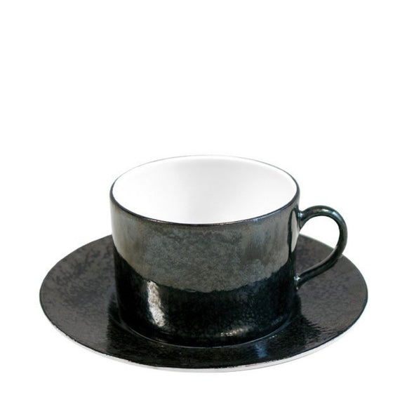 Sipping hot coffee with your social circle will be memorable when using this flawless Coffee Cup and Saucer Set by Studio Porcel. While the cup's exterior is enveloped in Black reactive ink, the interior is plain and simple. The artistic blemishes offer a unique texture.