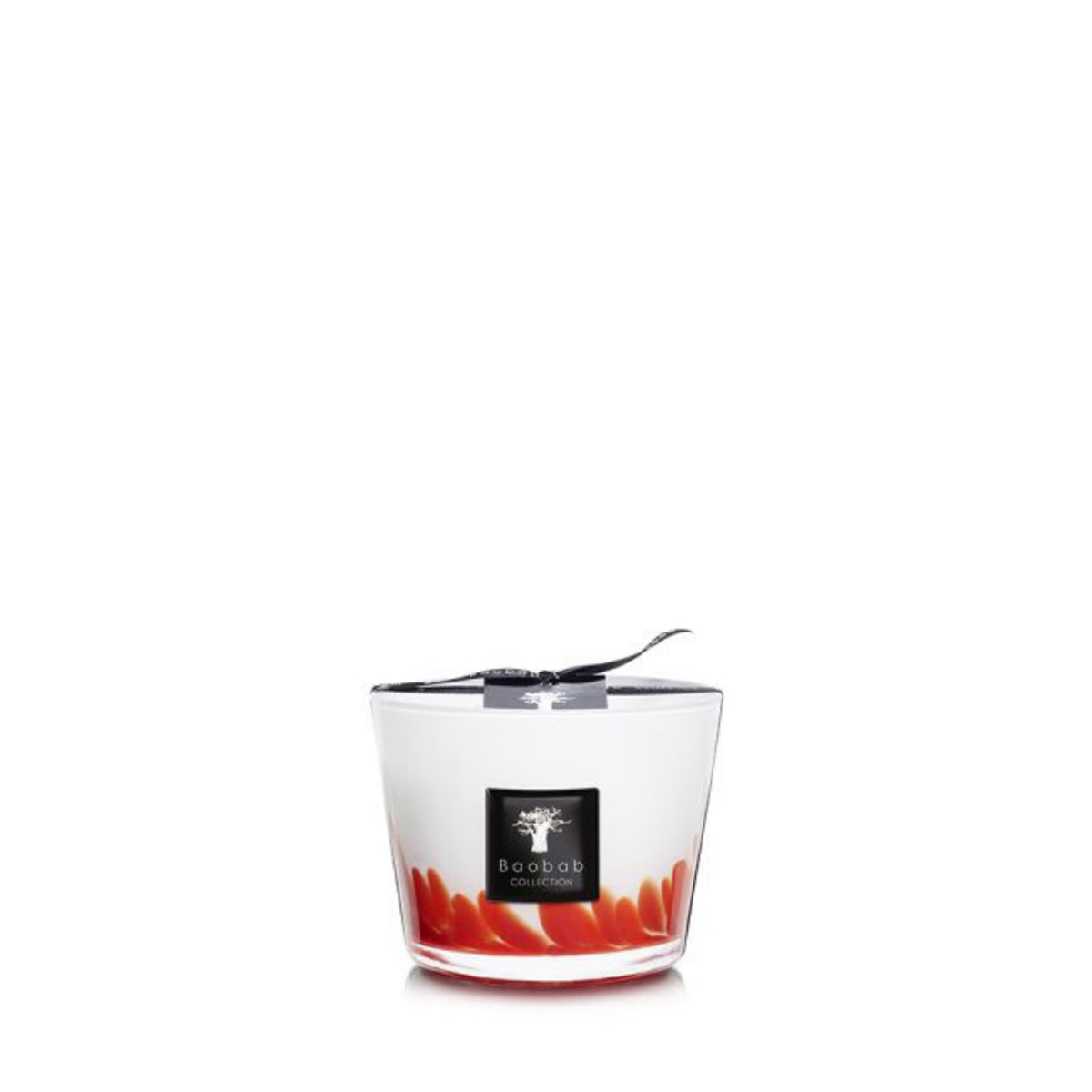 The Feathers Maasai scented candle will be your nighttime companion and will replenish your home with a flavorful aroma whenever you light it. A hand-blown glass composition with red inlays displays a feather effect, creating a mesmerizing aesthetic. Its amber, patchouli, and rum extract perfumes are blended to produce an unforgettable smell that you will fall in love with.
