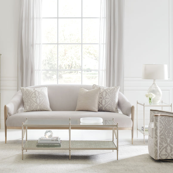 There's only one way to describe this table: perfect. Crafted of glass, metal, and mirror, it comes by its glamourous character naturally. This distinctive table boasts a Neutral Metallic finish-a seamless blend of silver and gold that accentuates its clean lines. A clear glass top creates another layer of visual appeal when you look through it and see the lower shelf and its back-painted mirror featuring an exquisite Silver Leaf pattern. Designed to blend seamlessly in any setting, this perfectly scaled table is the epitome of elegance.