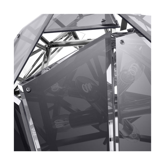 Channel glamour to your home interior with this stunning piece. A diamond frame in Nickel finish offers a luxurious aesthetic, while its hand-cut Beveled Smoke Glass makes it more noticeable and fascinating. This chandelier will instantly transform any space with its irresistible beauty.