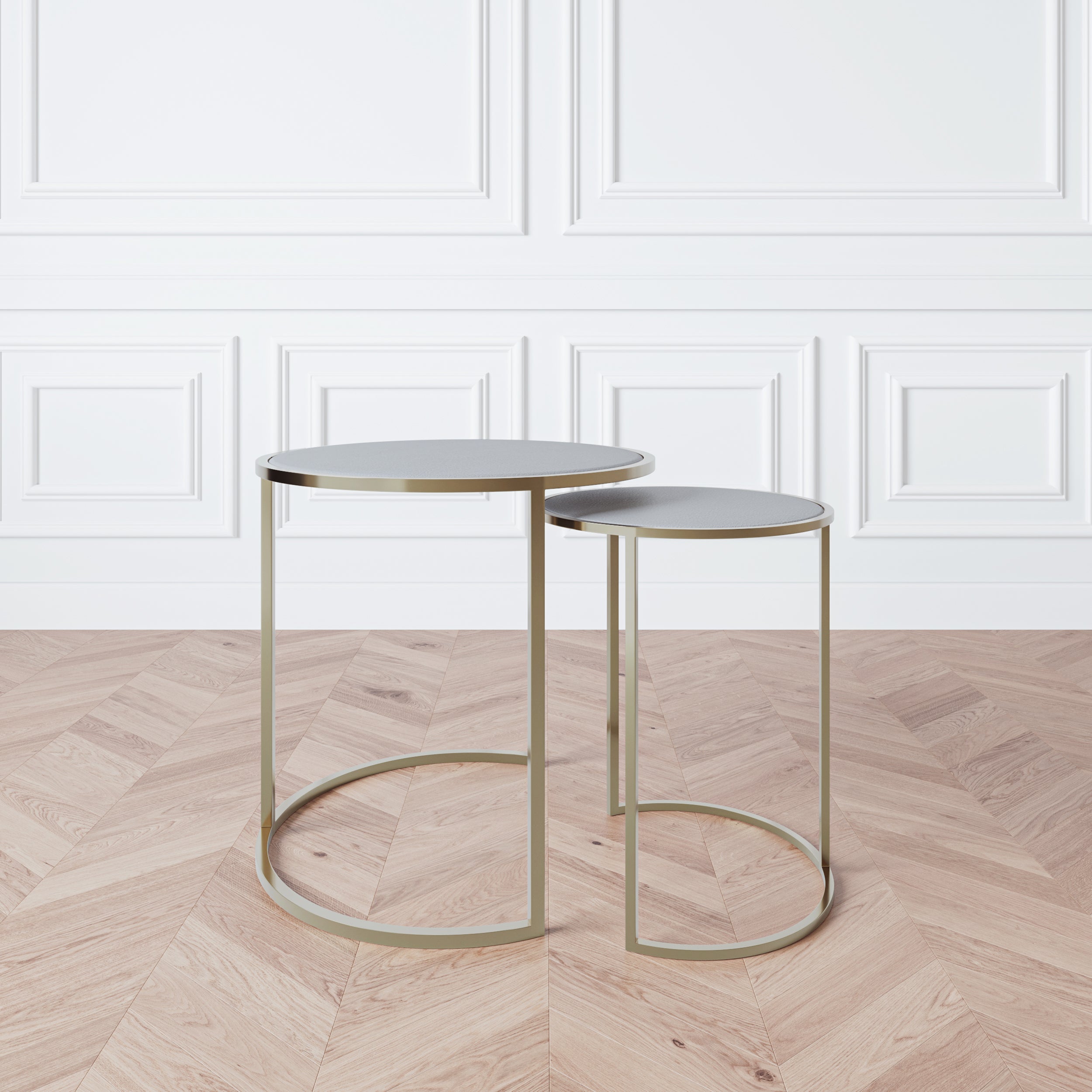 SHAYA IVORY LEATHERETTE BRASS NESTING TABLES