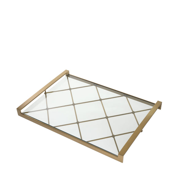 Serve your snacks and beverages in a classy style with this Goa Tray. Its geometric frame in Brushed Brass finish meets its opulent Clear Glass surface. This piece is ideal when hosting a large gathering on a special occasion.